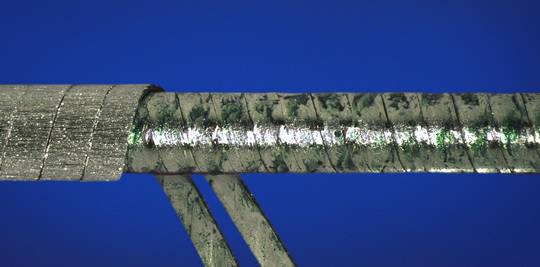 Neglected cleaning care. You can see that even the contact line has been covered with fused rosin (particularly on the right side of the picture).