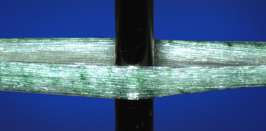 The same string after just one microfiber cloth wipe. It is absolutely clean without any damage from internal pollution or damage caused by wiping.